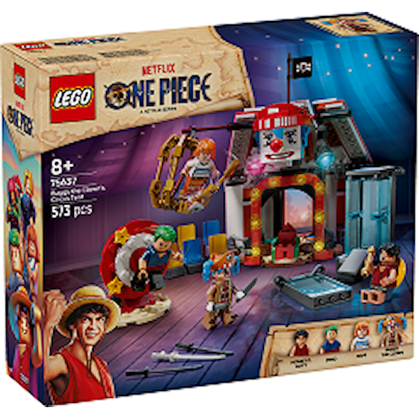 LEGO® ONE PIECE Buggy-klovnin sirkusteltta (75637) tempaa lapset mukaan ONE PIECE ‑sirkusseikkailuun. Yli 8-vuotiaille pojille ja tytöille sopiva LEGO animelelun monet tarvikkeet innostavat lapsia roolileikkeihin, ONE PIECE ‑televisiosarjasta tuttuihin kohtauksiin ja ikiomiin mielikuvitusseikkailuihin. Setti sisältää Luffyn, Zoron, Namin ja merirosvokapteeni Buggy-klovnin minihahmot. Rakennettavan sirkusteltan voi kääntää ympäri suuremmaksi leikkialueeksi irrotettavine istuinalueineen ja Buggyn valtaistuimineen. Rakennelmassa on 3 sirkushärveliä, joista sankareiden on paettava: vesisäiliö, pyörivä härveli ja riippuva lintuhäkki. Sirkusteltan sisällä olevissa laatikoissa ja tynnyreissä olevista osista voi rakentaa pienemmän version Buggysta. Mukana on myös monia huikeita aseita ja tarvikkeita, kuten 2 ”Wanted”-kylttiä. Elämys saa hauskoja digitaalisia ulottuvuuksia intuitiivisessa LEGO Builder sovelluksessa, jonka työkaluilla voi zoomata ja kiertää malleja 3D-näkymässä sekä seurata