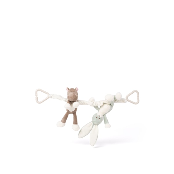 | Vaunulelu, jossa on pehmeitä ja viehättäviä hahmoja, jotka heiluvat leikkisästi viihdyttääkseen pieniä lapsia. Käytännöllinen 40 cm pituus tekee siitä helpon kiinnittää vaunuihin ja turvakaukaloihin. | ![]() |