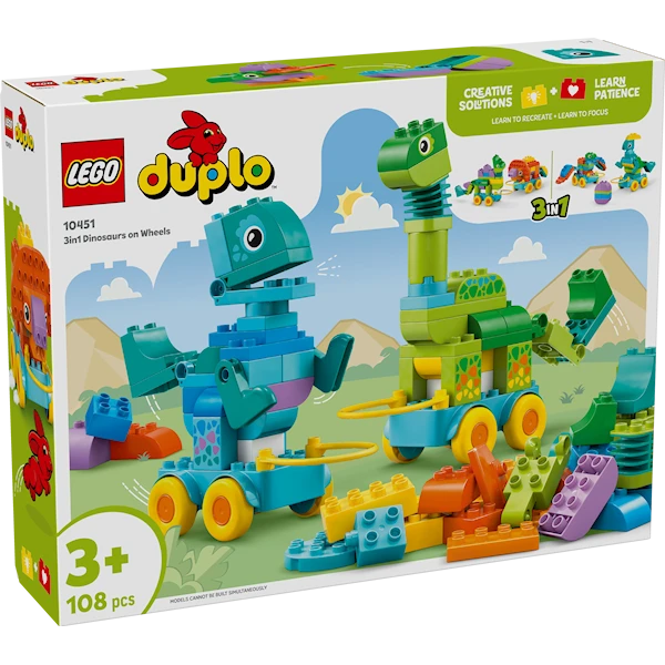 Dinosauruksia pyörien päällä – 3in1-setti LEGO® DUPLO Town (10451)
