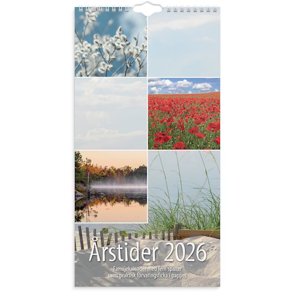| Familjekalender 2026 från Burde. Klassisk familjekalender med 5 kolumner och fina årstidsbilder. Väggkalendern har en praktisk ficka för lösa papper. Format: 220×430 mm. Layout: Månad/blad. Kalendarium: 2026-01-01 – 2026-12-31. Spiralbunden. Detaljer: Pappersficka. Innehåll: Kyrkliga helgdagar, flaggdagar, helgdagar/aftnar, månfaser, namnsdagar, temadagar/händelser, 5 kolumner. Antal sidor: 12. Miljöinformation: FSC®. Klimatkompenserad. Legal manufacturer Name: Burde Publishing AB Legal manufacturer Adress: Box 3101, SE-350 43 VÄXJÖ Legal manufacturer website: www.burde.com Legal manufacturer e-mail: info@burde.com |
