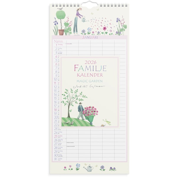 | Familjekalender 2026 från Burde. Väggkalendern har fem kolumner för anteckningar och bilder av Judith Glover. Format: 210×450 mm. Layout: Månad/blad. Kalendarium: 2026-01-01 – 2026-12-31. Spiralbunden. Innehåll: Flaggdagar, helgdagar/aftnar, namnsdagar, temadagar/händelser, 5 kolumner. Antal sidor: 12. Miljöinformation: FSC®. Ecolabel. Legal manufacturer Name: Burde Publishing AB Legal manufacturer Adress: Box 3101, SE-350 43 VÄXJÖ Legal manufacturer website: www.burde.com Legal manufacturer e-mail: info@burde.com |