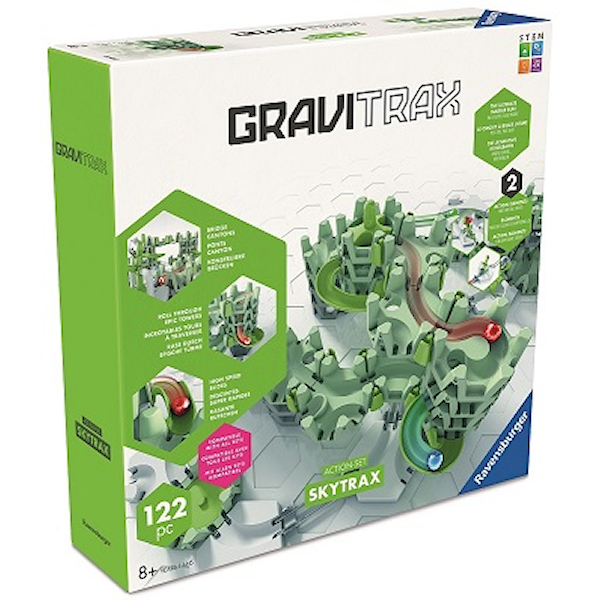 GraviTrax Action-Set Skytrax avaa uusia mahdollisuuksia jännittävillä ominaisuuksilla upeaan rakentamishauskuuteen! GraviTrax Action Set Skytraxin avulla koet ennennäkemättömällä tavalla luovaa rakentamishauskuutta! Innovatiiviset Skytrax-kivet tarjoavat jännittäviä uusia ominaisuuksia: Anna marmorien pudota kivien läpi, nappaa ne ja yhdistä ne silloiksi! Liukumäet lähettävät marmorikuulat kiitämään ja pyörimään majesteettisten tornien ympärillä. Luovuudelle ja hauskuudelle on vain taivas rajana – täydellinen seikkailijoille, jotka etsivät temppuja täynnä olevaa marmoripallojuoksukokemusta loputtomilla uusilla mahdollisuuksilla! 8-vuotiaasta alkaen. Varoitus. Ei sovellu alle 36 kuukauden ikäisille lapsille. Pieniä osia. Tukehtumisvaara. Valmistajan laillinen nimi: Brio AB Laillinen valmistaja Osoite: PL 305, SE-201 23 Malmö Valmistajan laillinen verkkosivusto: https://www.brio.se Valmistajan laillinen sähköpostiosoite: info@brio.net