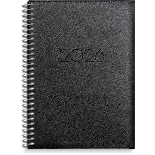 Kalender 2026 från Burde. Kalender med mjuk pärm i konstläder med den populära flärpen som kan användas som bokmärke. Ett klassiskt uppslag med liggande layout där fokus ligger på tydlig veckoplanering. Inlagans layout passar dig som har mycket på gång, oavsett veckodag. Kalendern är liten och enkel och med lika mycket utrymme för både vardag och helg. Format: A6. Layout: Vecka/uppslag. Liggande. Kalendarium: 2025-12-08 – 2027-01-03. Omslag: Konstläder. Spiralbunden. Innehåll: Kyrkliga helgdagar, flaggdagar, helgdagar/aftnar, månfaser, namnsdagar, temadagar/händelser, årsöversikt/årsöversikter, årsplan/årsplaner. Antal sidor: 144. Miljöinformation: FSC® papper. Legal manufacturer Name: Burde Publishing AB Legal manufacturer Adress: Box 3101, SE-350 43 VÄXJÖ Legal manufacturer website: www.burde.com Legal manufacturer e-mail: info@burde.com