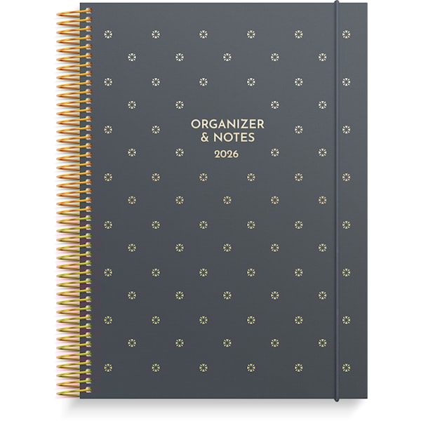 Kalenteri ja muistikirja yhdessä! Organizer & Notesin avulla saat runsaasti tilaa suunnitella jokaisen päivän. Ensimmäinen osa sisältää kalenterin, ja toinen osa sisältää rivilliset sivut luetteloillesi ja muistiinpanoillesi. Siirrettävien välilehtien avulla siirryt nopeasti ja sujuvasti viikkosuunnittelun ja muistiinpanojen välillä. Kun sinulla on kaikki yhdessä paikassa, stressi vähenee ja voit keskittyä muihin asioihin.Painettu kartonkikansi, kuminauhalla ja siirrettävillä kirjamerkeillä. Kalenterin aukeamalla yksi viikko ja kuluvan kuukauden kalenteritaulukko. Kalenteri sisältää nimipäivät, liputuspäivät, kuun vaiheet, vuosiruudukot kuluvalle ja seuraavalle vuodelle, vuosisuunnitelmat kuluvalle ja seuraavalle vuodelle sekä paljon muistiinpanosivuja. Kalenteriosa: vk 50 2025-vk 53 2026/2027. Suomenkielinen. Kierresidottu. FSC®.Koko: 148×210 mm (A5). Legal manufacturer Name: Burde Publishing AB Legal manufacturer Adress: Box 3101, SE-350 43 VÄXJÖ Legal manufacturer website: