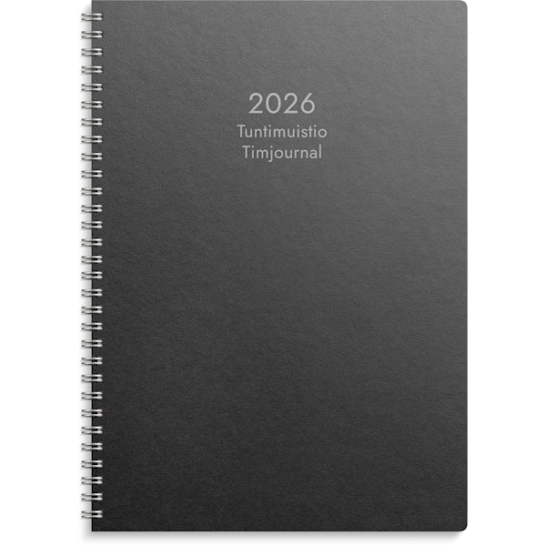 Kalenteri 2026 Tuntimuistio Musta Eco parikierresidottu A4 Burde