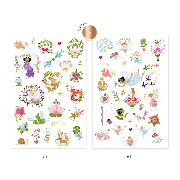| Kokoelma kauniita väliaikaisia tatuointeja, joissa on värikkäitä keijuja, eläimiä ja kukkia metallinhohtoisella koristelulla. Motiivit ovat sekä tyylikkäitä, söpöjä että hienoja. Pakkaus sisältää kaksi erikokoista tatuointiarkkia – yhteensä yli 50! Legal manufacturer Name: Djeco Legal manufacturer Adress: 158 Rue des Grande Augustins, 75006 Paris, Frankrike Legal manufacturer website: https://www.djeco.com/ Legal manufacturer e-mail: info@djeco.com | ![]() |