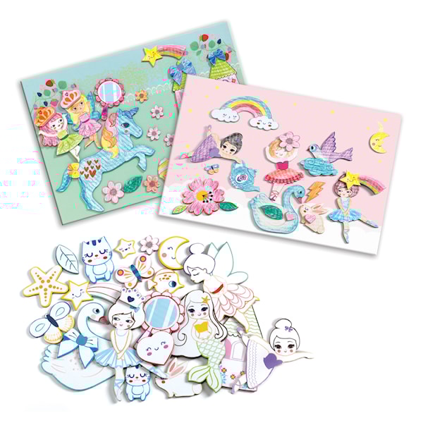 Hauska askartelusarja pienemmille lapsille, jossa voit värittää pahvihahmoja ja liimata ne kuvitetuille taustoille luodaksesi kauniita aiheita, jotka ovat täynnä balleriinoja, merenneitoja, söpöjä eläimiä, prinsessoja ja muita kivoja asioita. Legal manufacturer Name: Djeco Legal manufacturer Adress: 158 Rue des Grande Augustins, 75006 Paris, Frankrike Legal manufacturer website: https://www.djeco.com/ Legal manufacturer e-mail: info@djeco.com