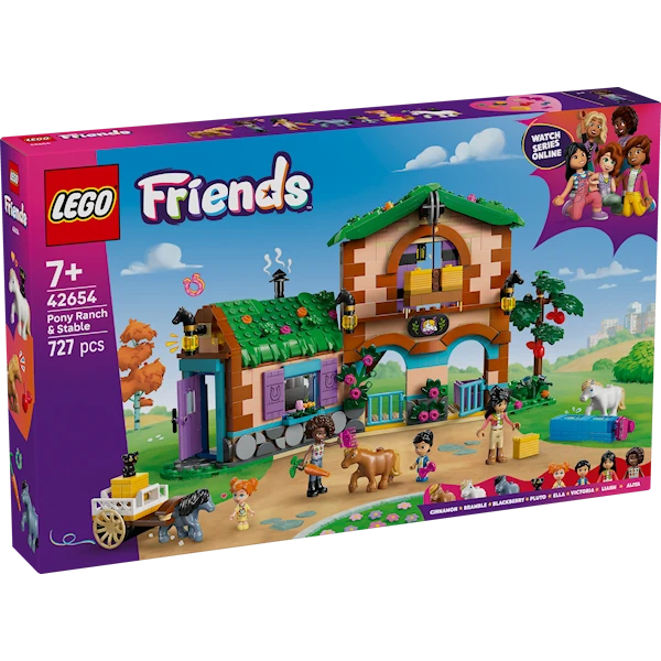 Tässä lahjaksi rakennussetti ilahduttamaan nuoria heppahöperöitä! LEGO® Friends Maatilan ponitalli (42654) innostaa 7 vuotta täyttäneitä tyttöjä ja poikia keksimään omia ystävyystarinoita eläinleikeissään. Setti sisältää rakennettavan ponitilan, jossa on talli ja asuintilat, kärryn, 2 mininukkea, 2 mikronukkea, kissahahmon, 3 ponihahmoa ja paljon tarvikkeita mielikuvitusleikkeihin. Lapset voivat keksiä loputtomia seikkailuja Aliyan, Liannin, Victorian ja Ella hahmojen kanssa. 3 ponin hoitaminen ja ruokkiminen on hauskaa, ja settiin sisältyy toimiva heinähissi, jolla heinäpaalit voi siirtää parvelle tai kärryyn. Tallin sisällä on viihtyisä oleskelutila sekä heinäparvi, jossa ystävykset mielellään nukkuvat – tämähän on suorastaan hevosfanien unelma! LEGO Friends maailmasta löytyy myös monia muita rakennussettejä (myydään erikseen). LEGO Builder sovellus opastaa tämän setin intuitiivisessa rakennuselämyksessä. Sovelluksessa voi zoomata ja kiertää malleja 3D-näkymässä, tallentaa settejä