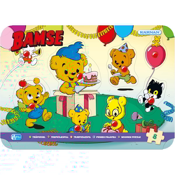 | Nuppipalapeli puusta, 8 palaa. Kuvassa Bamse ystävineen juhlimassa syntymäpäivää. Legal manufacturer Name: Story House Egmont AB Legal manufacturer Adress: Studentgatan 4, 211 38 Malmö Legal manufacturer website: storyhouseegmont.se Legal manufacturer e-mail: orderkontor@egmont.se | ![]() |