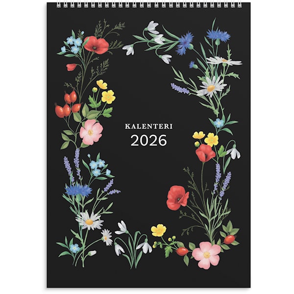 Seinäkalenteri luonnon kuvituksilla. Kauniisti kuvitettu aihe erottuu selvästi mustasta taustasta ja toimii kuin taulu. Kuukausikalenterissa on mahdollisuus tehdä muistiinpanoja. Kalenteri sisältää nimipäivät, liputuspäivät, juhlapyhät ja kuun vaiheet. Suomenkielinen. Parikierresidottu. FSC®. Koko: 210×297 mm (A4). Legal manufacturer Name: Burde Publishing AB Legal manufacturer Adress: Box 3101, SE-350 43 VÄXJÖ Legal manufacturer website: www.burde.com Legal manufacturer e-mail: info@burde.com