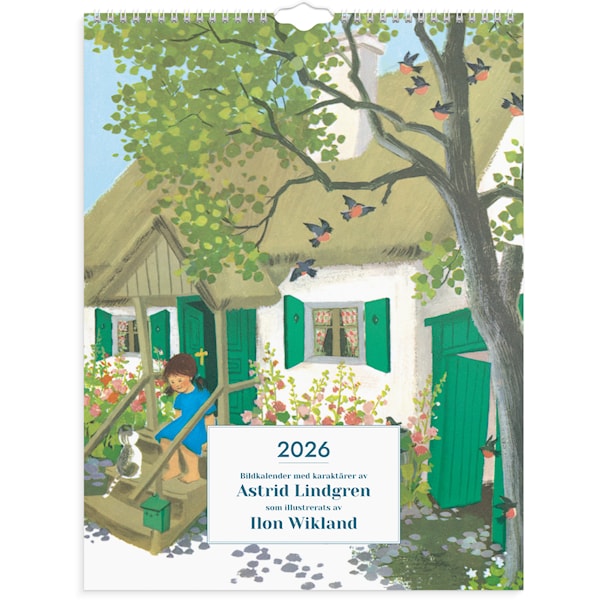 Väggkalender 2026 från Burde. Dekorera ditt hem med minnen från din barndom, återupptäck Astrid Lindgrens karaktärer som är illustrerade av Ilon Wikland i form av en väggkalender. Prata om sagorna, återse filmerna och väck minnen och känslora du kände som barn till liv igen. Format: 295×390 mm. Layout: Månad/blad. Kalendarium: 2026-01-01 – 2026-12-31. Spiralbunden. Innehåll: Flaggdagar, helgdagar/aftnar, månfaser, namnsdagar, temadagar/händelser. Antal sidor: 12. Miljöinformation: FSC®. Legal manufacturer Name: Burde Publishing AB Legal manufacturer Adress: Box 3101, SE-350 43 VÄXJÖ Legal manufacturer website: www.burde.com Legal manufacturer e-mail: info@burde.com