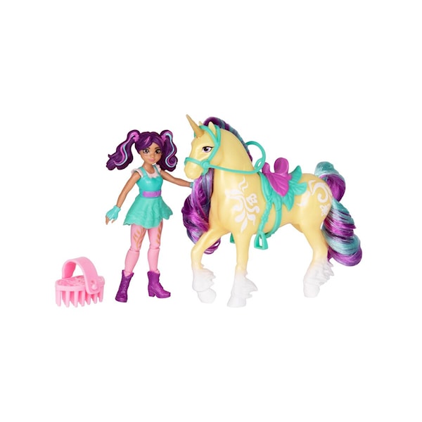 Unicorn Academyn Ava & Leaf -leikkisetti on kunnianosoitus ratsastajan ja yksisarvisen väliselle vahvalle siteelle. Avassa (11,4 cm) on 7 taivutettavaa niveltä ja realistisia yksityiskohtia sarjasta. Lehti (12,7 cm) sopii Avan tyyliin kasvimaagisilla merkinnöillä ja siveltävällä violetilla ja sinivihreällä harjalla ja häntällä (harja mukana). Irrotettavan suitsien ja satulan ansiosta Ava istuu helposti Leafillä heidän ajaessaan uusia seikkailuja. Unicorn Academyn hahmot heräävät henkiin animoidun NETFLIX-sarjan ja myydyimpien kirjojen innoittamana, jossa ystävyys hallitsee. 4-vuotiaasta alkaen.