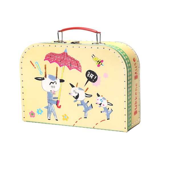 Pakkaaminen, kantaminen, avaaminen ja sulkeminen ovat monien hauskojen leikkien perusta. Tässä leikkisässä lastenlaukussa on tilaa kaikkein tärkeimmille tavaroille. Tiedot: * Paperilaukku on 25 cm * Tehty kestävästä paperista, jossa on teräskahvat Paperilaukun ulkopinnassa on leikkisiä kuvituksia Bukkene Bruse -tarinasta. Laukun sisällä on etiketti, johon lapsi voi kirjoittaa nimensä, jotta tiedätte, kenelle laukku kuuluu. Nyt lapsi on valmis kaikkiin leikkisiin seikkailuihin Bukkene Bruse -tarinan kanssa! Bukkene Bruse – on moderni tulkinta ajattomasta norjalaisesta kansansadusta ’Kolme vuohta Bruse’, joka on alun perin kirjattu Peter Christen Asbjørnsen vuonna 1842. Bjørn F. Rørvik ja Gry Moursundin humoristiset tarinat heijastavat norjalaisen kulttuurin ydinolemusta, ja harvat kulttuuriteokset resonoivat yhtä syvästi norjalaisessa kansansielussa kuin nämä rakastetut kansansadut. Varoitus! Ei sovellu alle 36 kuukauden ikäisille lapsille. Pieniä osia. Tukehtumisvaara.