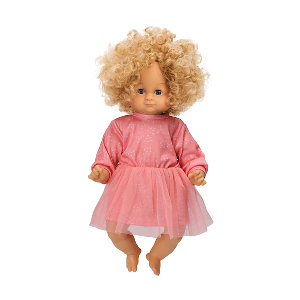 Et voi muuta kuin rakastaa Lillania hänen vaaleanpunaisessa mekossaan, jossa on tyllihame, ja ihanassa kiharassa tukassa. Hänen vartalonsa on pehmeä ja hän rakastaa saada suloisia haleja! Nukke on 36 cm pitkä ja puhuu viittä eri kieltä: ruotsi, norja, tanska, suomi ja englanti. Hän osaa nauraa, itkeä ja on juuri oppinut puhumaan. Hän osaa sanoa ’Lillan’, ’äiti’, ’isä’, ’hei’ ja ’hei hei’, kun painat häntä vatsasta. Vaihda helposti kieltä nuken selässä olevasta puhemekanismista. Nuken vartalo on pehmeä, ja silmät sulkeutuvat, kun lapsi asettaa hänet makuulle. Yhdistä ja yhdistele mielellään nukketarvikkeita ja nukenvaatteita, jotka sopivat jopa 36 cm nukeille. Skrållan – Ruotsalainen klassikko vuodesta 1966, joka on rakastettu sukupolvien ajan. Laadukkaita nukkeja, nukkien tarvikkeita ja nukkien vaatteita, jotka tuottavat iloa ja hauskaa nukkeleikkeihin lapsille kaikissa ikäryhmissä! Varoitus! Ei sovellu alle 36 kuukauden ikäisille lapsille. Pienet osat. Tukehtumisvaara.