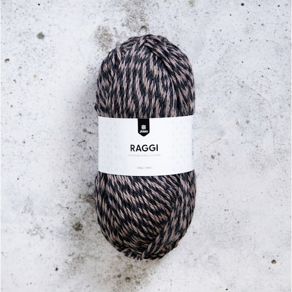 Raggi on sukkalankojen kantaisä ja Järbon ylpeys, ensimmäisen kerran kehrätty Järbon kehräämöllä. Superwash-käsitellyn villan ja polyamidin sekoitus tekee langasta kestävän ja vahvan. Siksi se sopii erityisen hyvin sukkiin. Raggi lämmittää myös ihanasti talvineuleissa, pipoissa, lapasissa ja huiveissa. Klassinen räsysukkalanka, yksinkertaisesti. Sukat, koot 22-30: Noin 100 g Sukat, koot 37-41: Noin  * Materiaali: 70 % Villaa ”Superwash”, 30 % Polyamidia * Kerä: 100 g = 150 m * Tiheys: Worsted/Aran * Neuletiheys: noin 18 s x 24 krs = 10cm² * Noin 14 ks x 17 krs virkkuukoukulla * Puikot: nro 4.5 mm ja virkkuukoukulla nro 4.5 * Pesuohje: Konepesu max 40°C. Ei huuhteluainetta. Tasokuivaus. * Valmistettu Turkissa