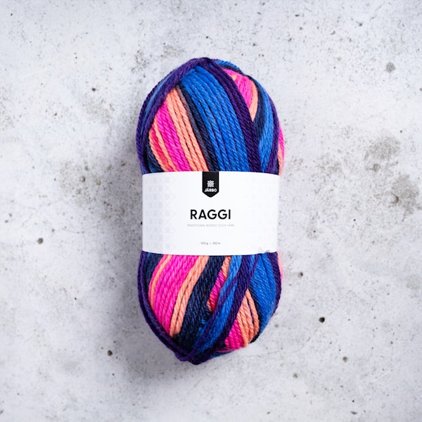 Raggi on sukkalankojen kantaisä ja Järbon ylpeys, ensimmäisen kerran kehrätty Järbon kehräämöllä. Superwash-käsitellyn villan ja polyamidin sekoitus tekee langasta kestävän ja vahvan. Siksi se sopii erityisen hyvin sukkiin. Raggi lämmittää myös ihanasti talvineuleissa, pipoissa, lapasissa ja huiveissa. Klassinen räsysukkalanka, yksinkertaisesti. Sukat, koot 22-30: Noin 100 g Sukat, koot 37-41: Noin * Materiaali: 70 % Villaa ”Superwash”, 30 % Polyamidia * Kerä: 100 g = 150 m * Tiheys: Worsted/Aran * Neuletiheys: noin 18 s x 24 krs = 10cm² * Noin 14 ks x 17 krs virkkuukoukulla * Puikot: nro 4.5 mm ja virkkuukoukulla nro 4.5 * Pesuohje: Konepesu max 40°C. Ei huuhteluainetta. Tasokuivaus. * Valmistettu Turkissa