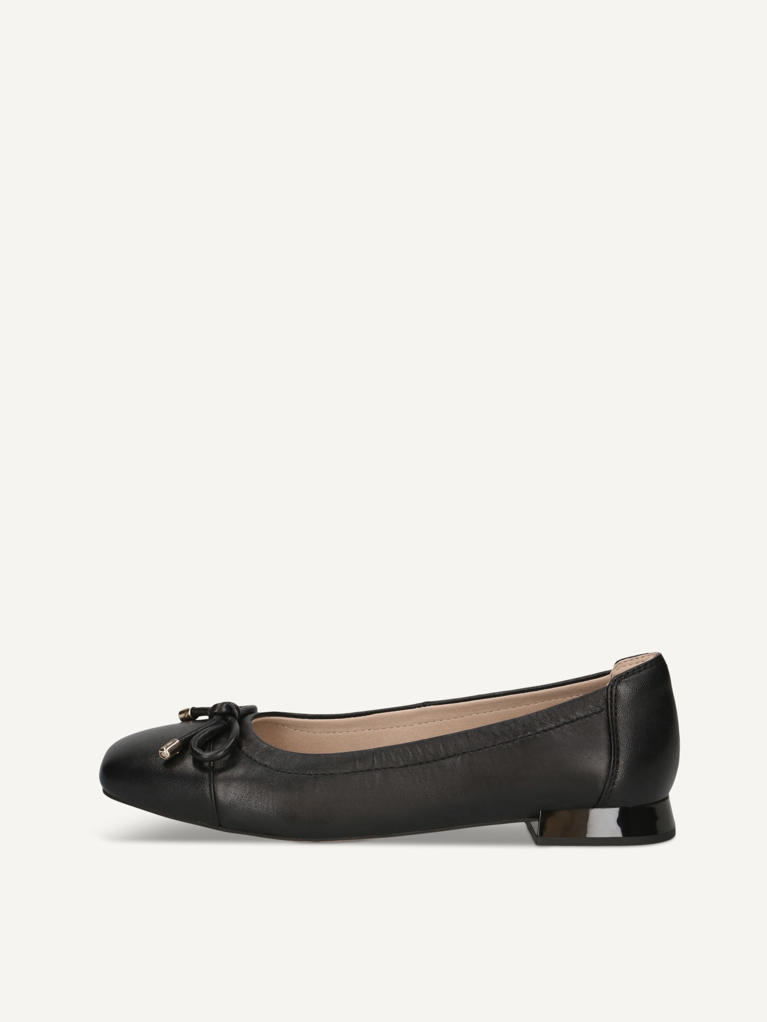 CAPRICE Ballerina, black, made of Leather and textile with Trapeze heel, Size 36