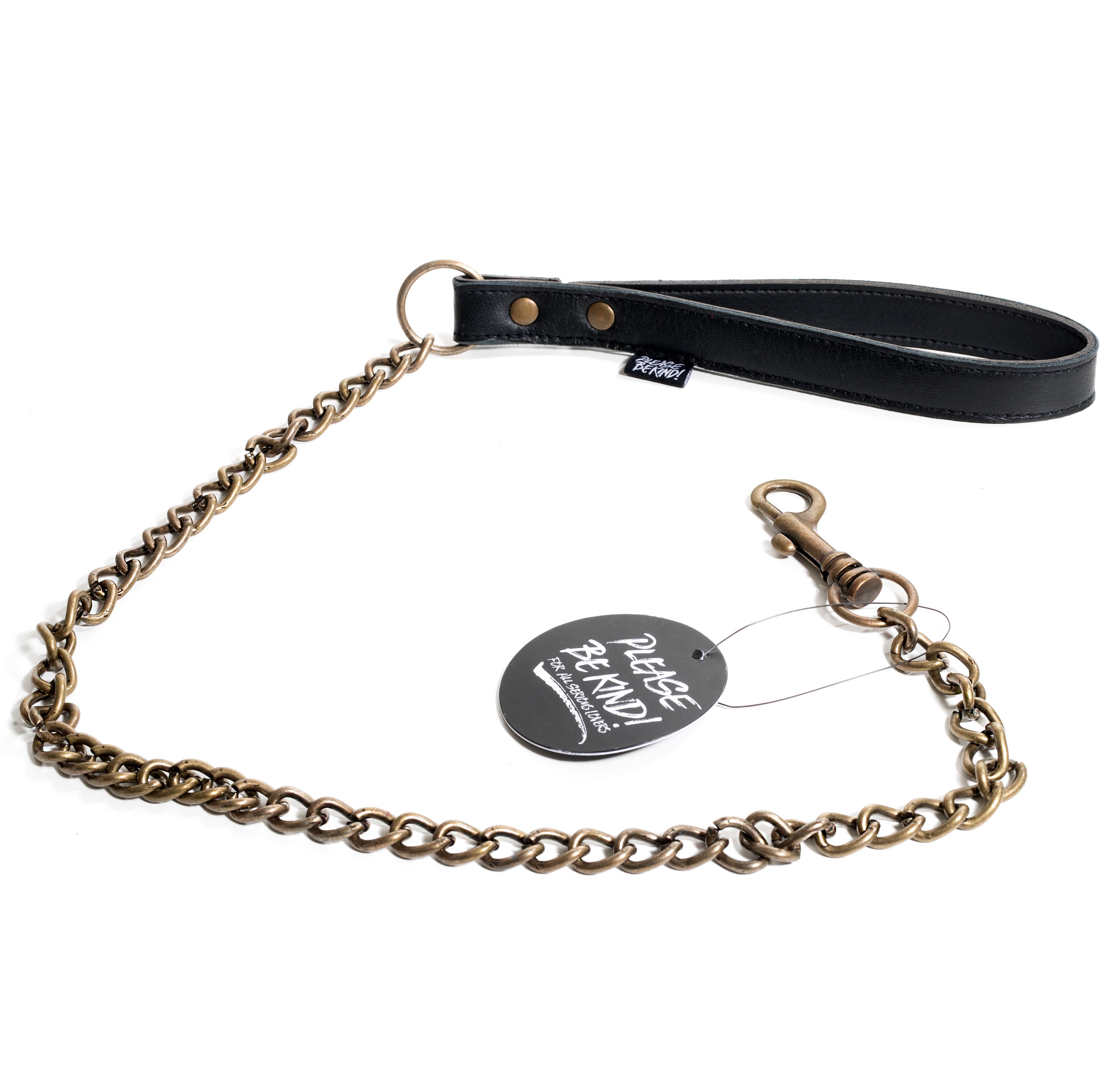 Please Be Kind & Be My Master! on musta talutushihna aidosta nahasta jossa on metalliketju ja koukku johon kiinnittää kaulapanta.<br /><br />Koko pituus: 86 cm<br />ketjun pituus (koukun kanssa): 63 cm