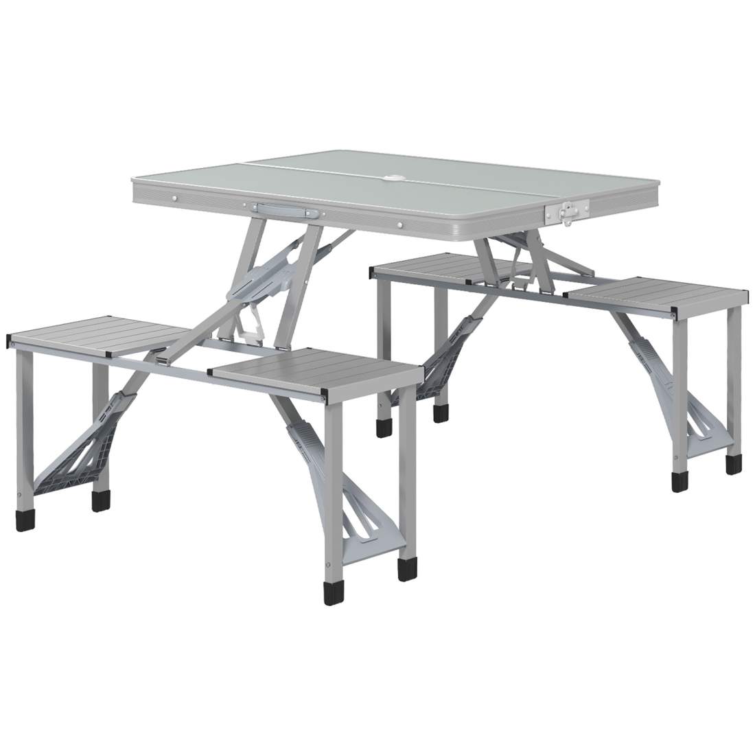 | Kannettava kokoontaittuva retkeilypöytä sisäänrakennetuilla istuimilla