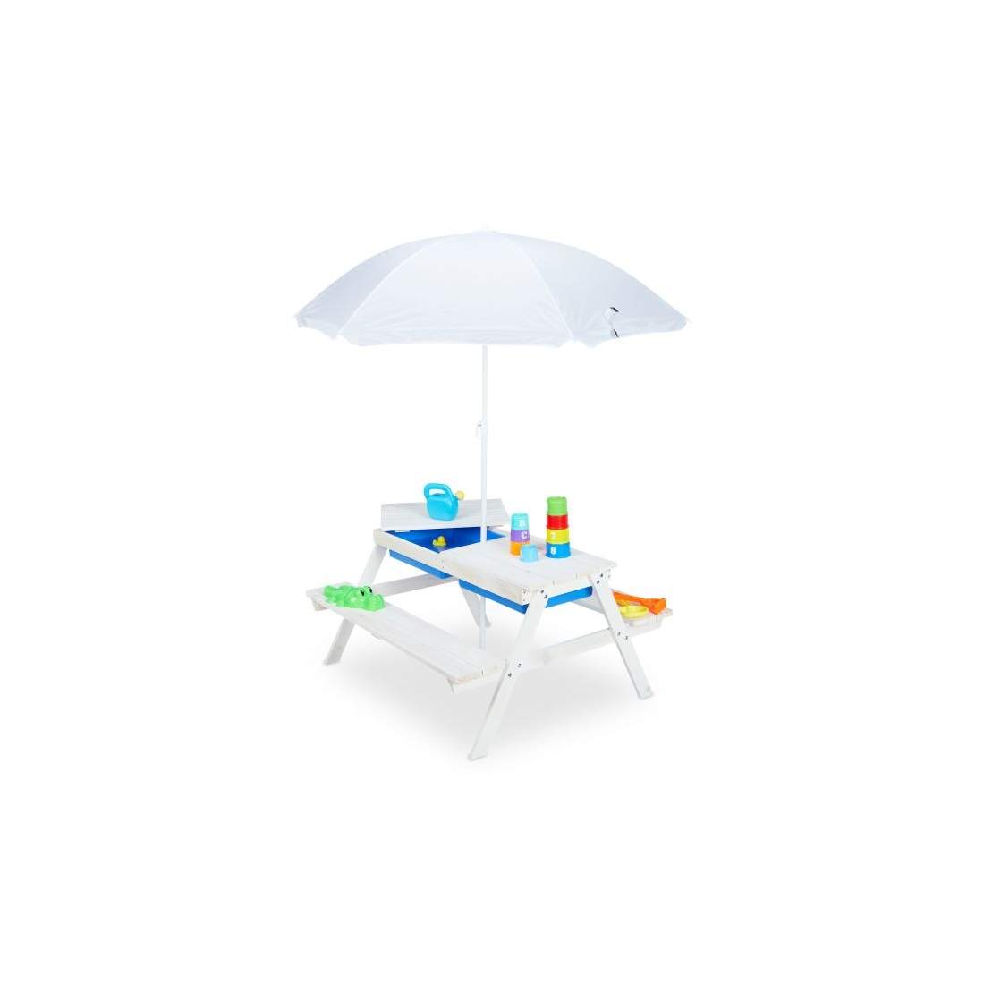 | Muuta ulkoleikki tällä monipuolisella lasten piknikpenkillä, jossa on vesi- ja hiekkaleikkipöytä. Luovuutta varten suunniteltu se tarjoaa varjoisan, lapsiystävällisen tilan loputtomaan hauskanpitoon.